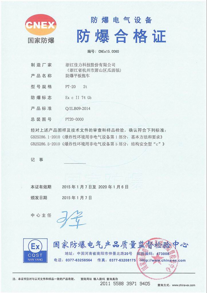 PT-20 防爆平板拖車 氣體證書