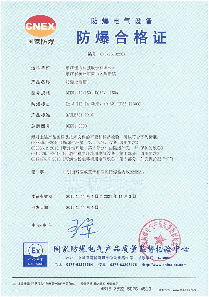 防爆證書>>詳細信息
