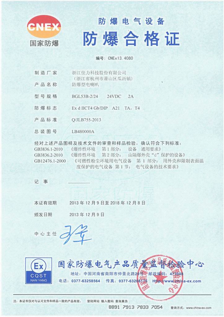 防爆證書>>詳細(xì)信息
