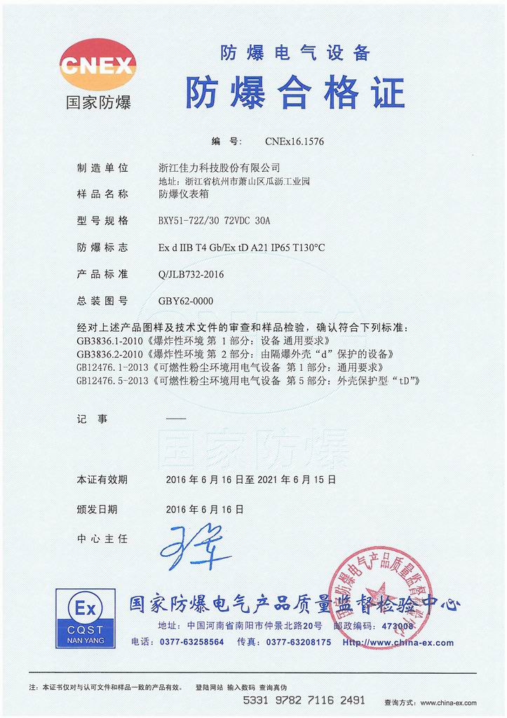 防爆證書>>詳細信息
