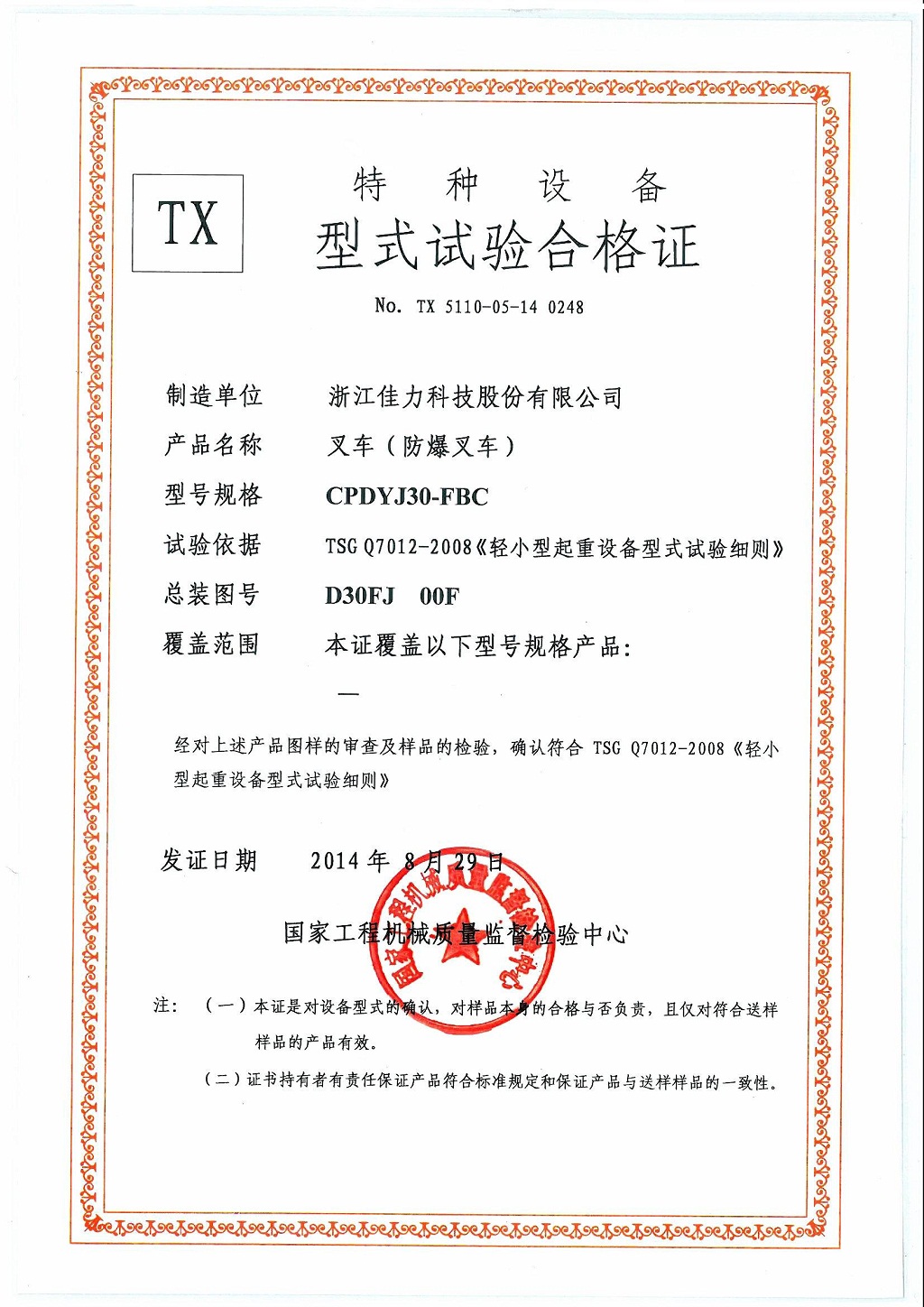 CPDYJ30-FBC型式試驗合格證