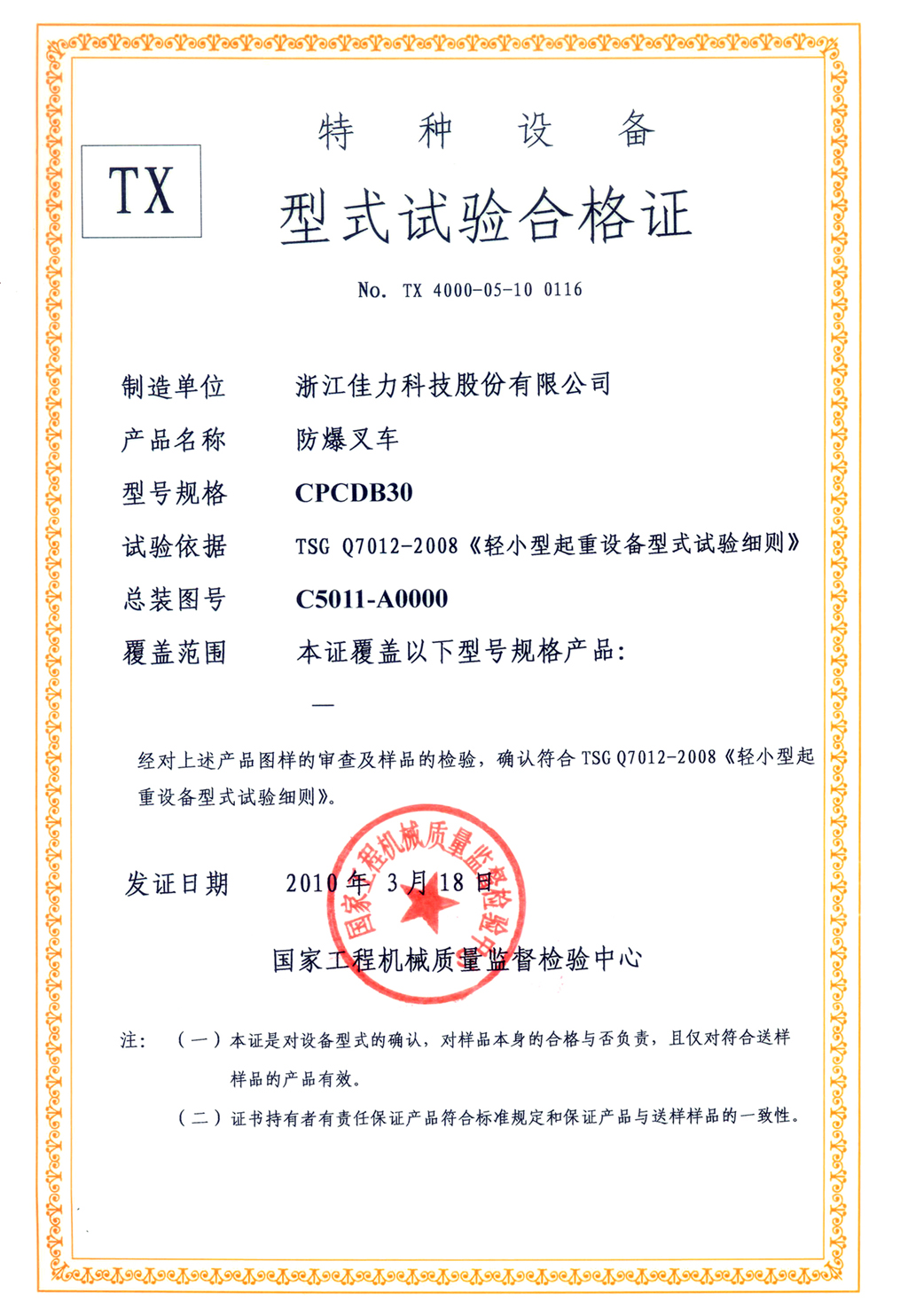 型式試驗合格證>>詳細信息